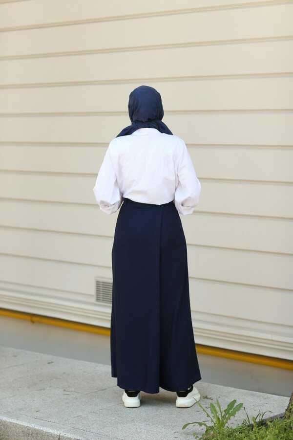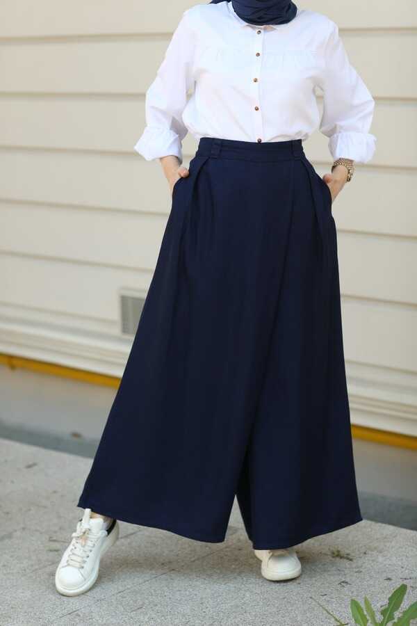 1153-Denim Bol Paça Pantolon Etek Lacivert