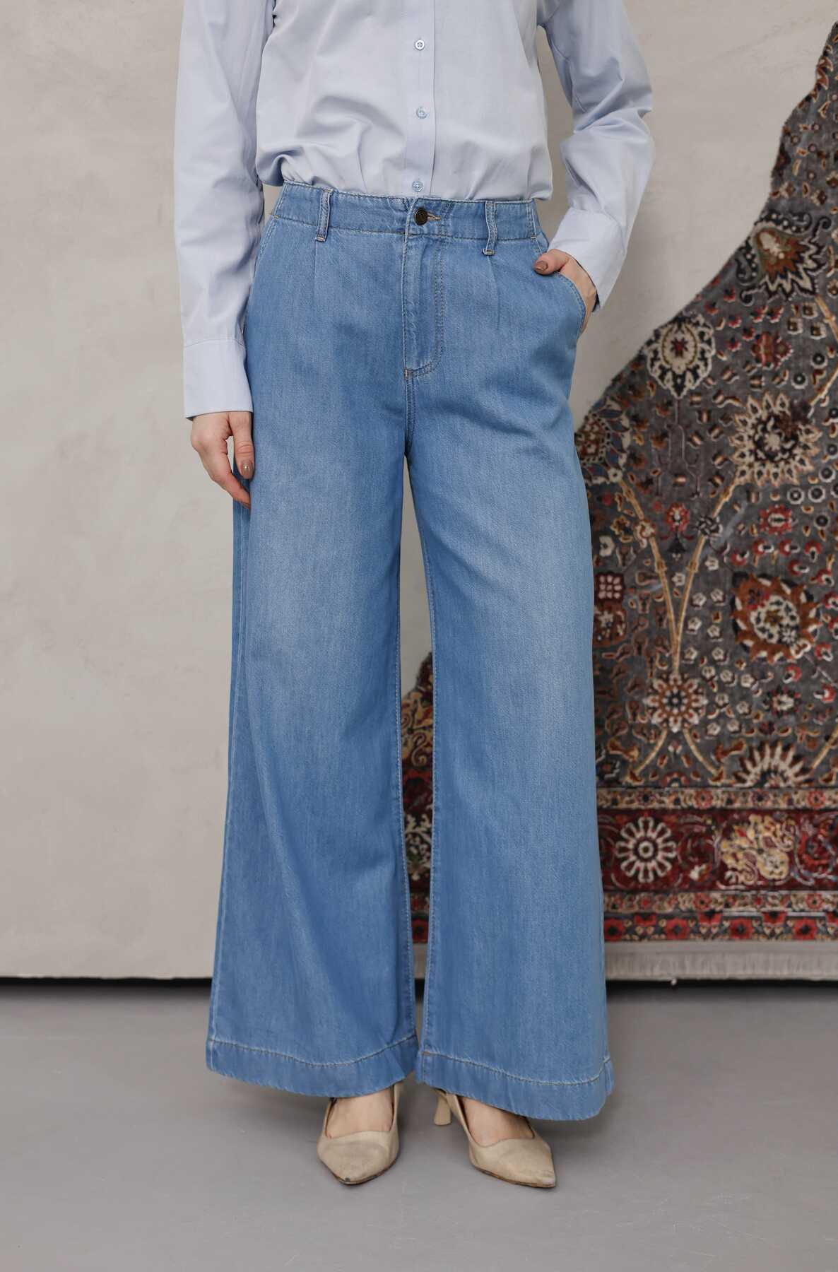 - Ürün Adı : 1164-Pileli Denim Pantolon Mavi