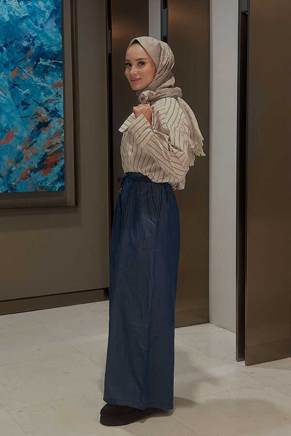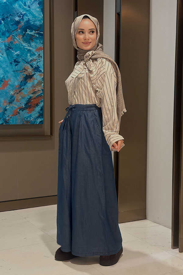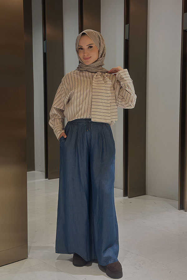 - Ürün Adı : 1167-Tensel Lastikli Pileli Pantolon Koyu Mavi