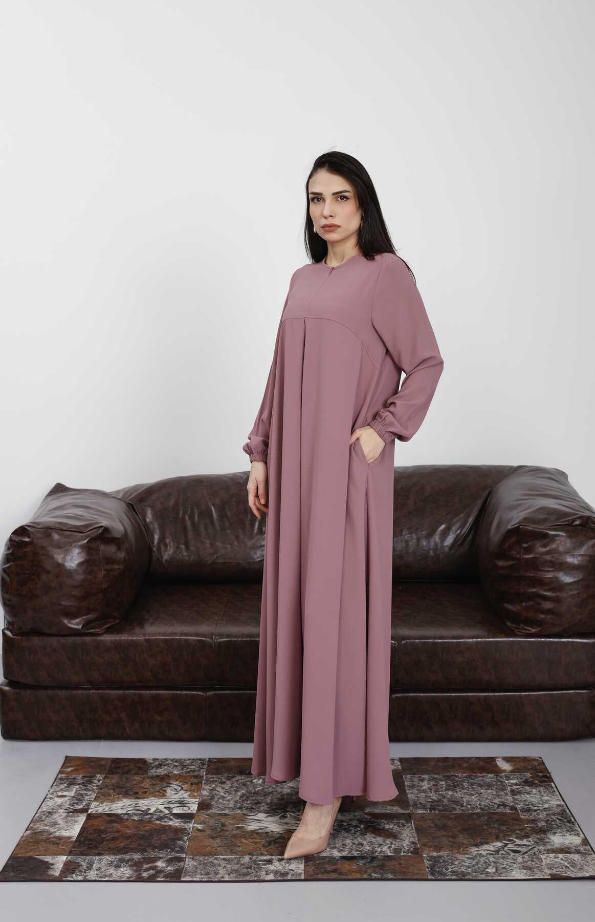 - Ürün Adı : 6482-Ön Tek Pileli Krep Elbise Gül Kurusu