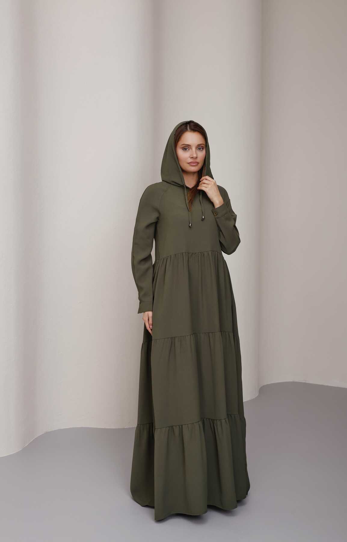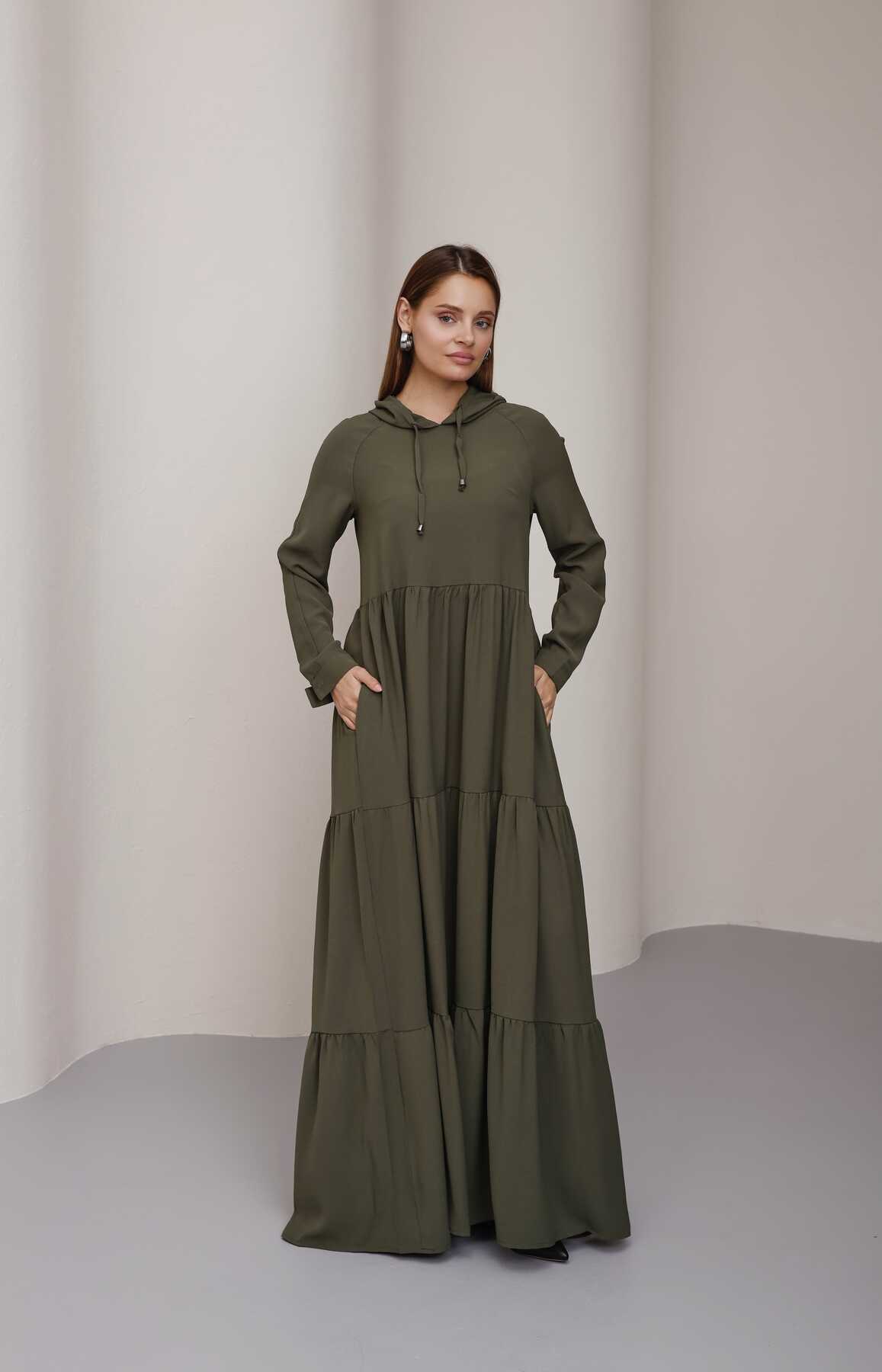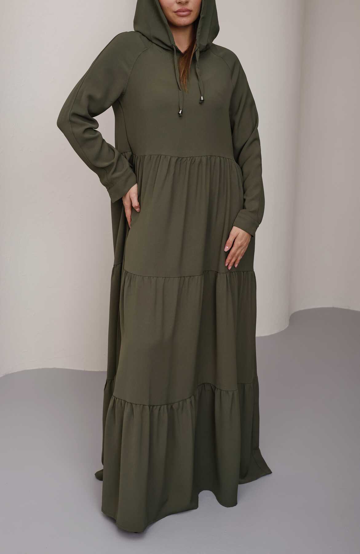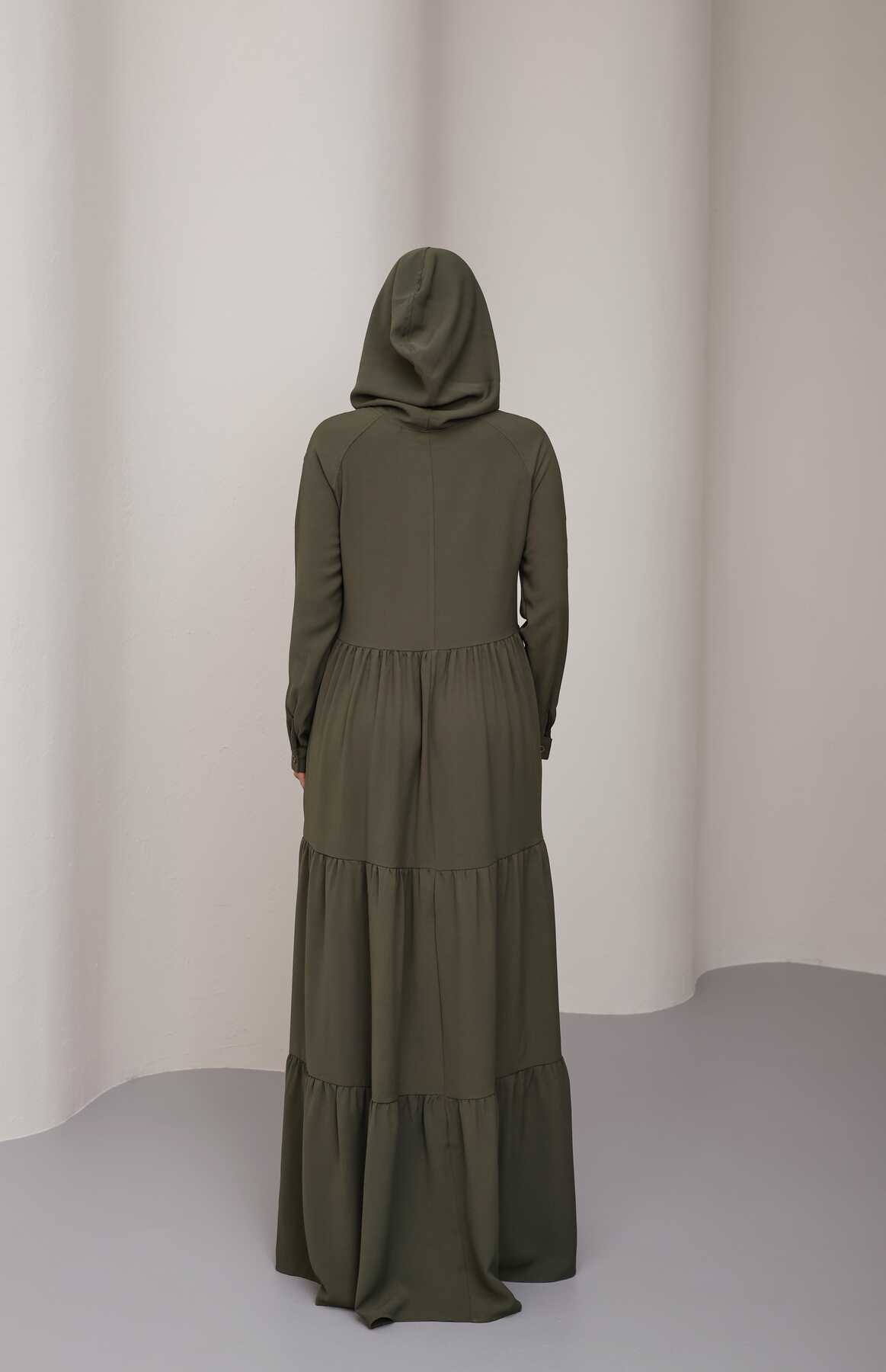 6531-Berlin Kapşonlu Reglan Kollu Elbise Haki