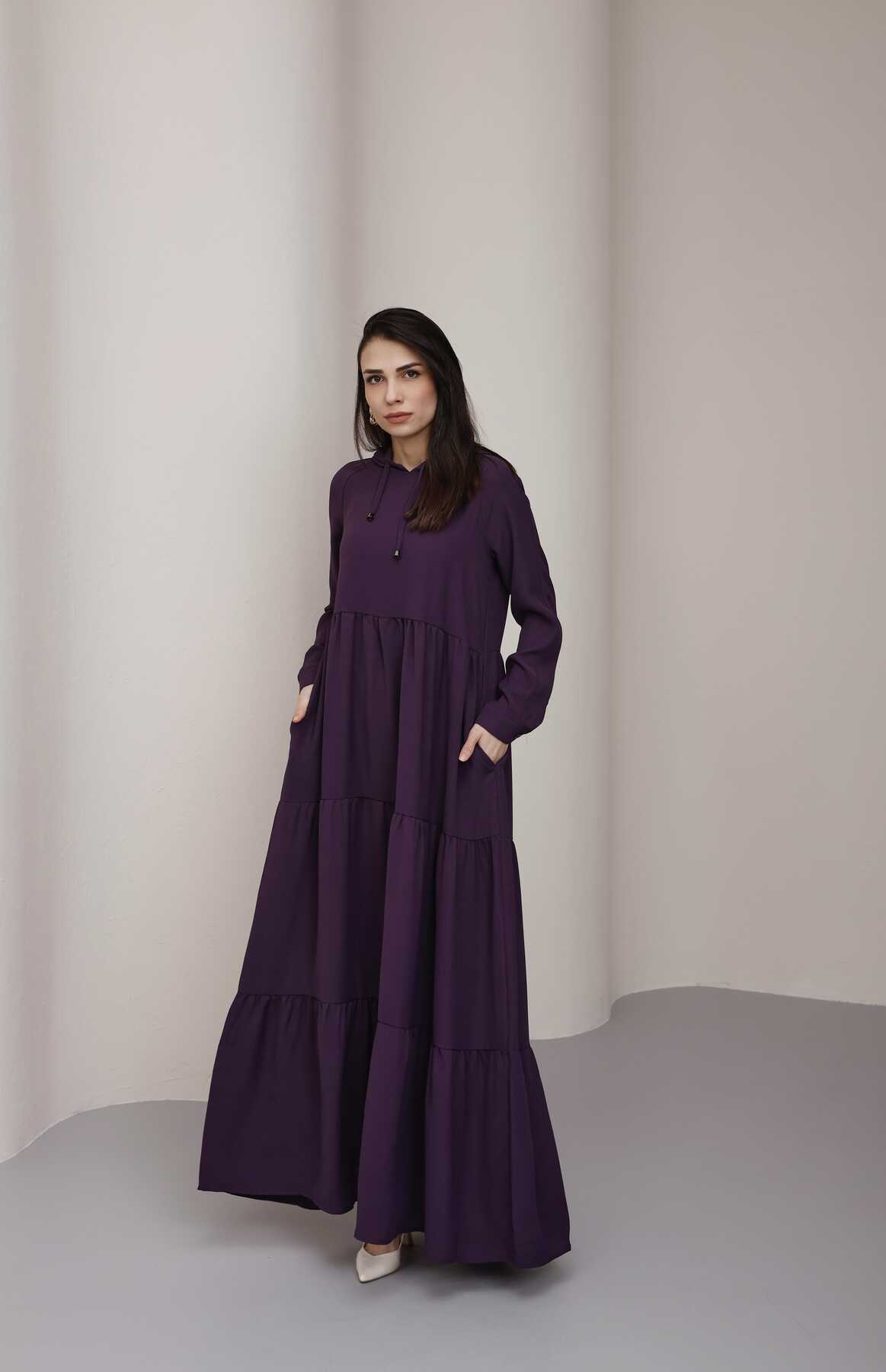 - Ürün Adı : 6531-Berlin Kapşonlu Reglan Kollu Elbise Mürdüm
