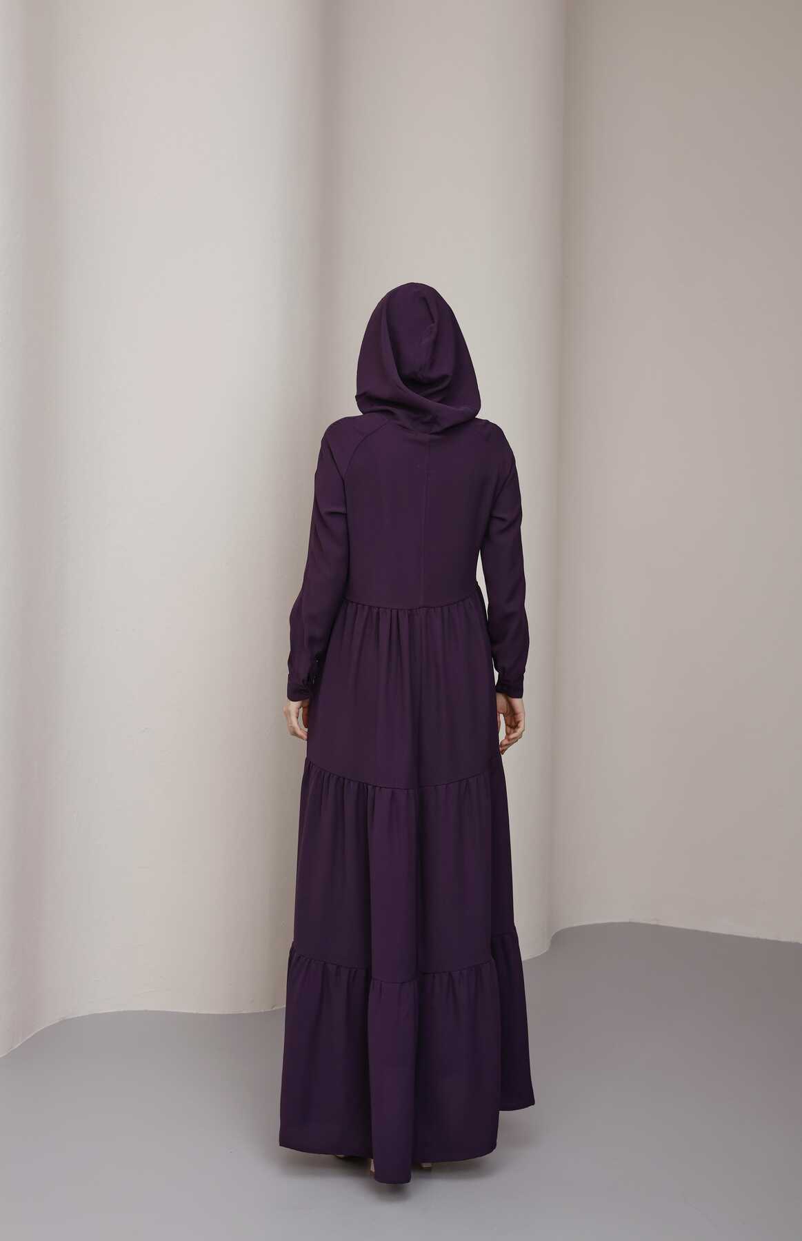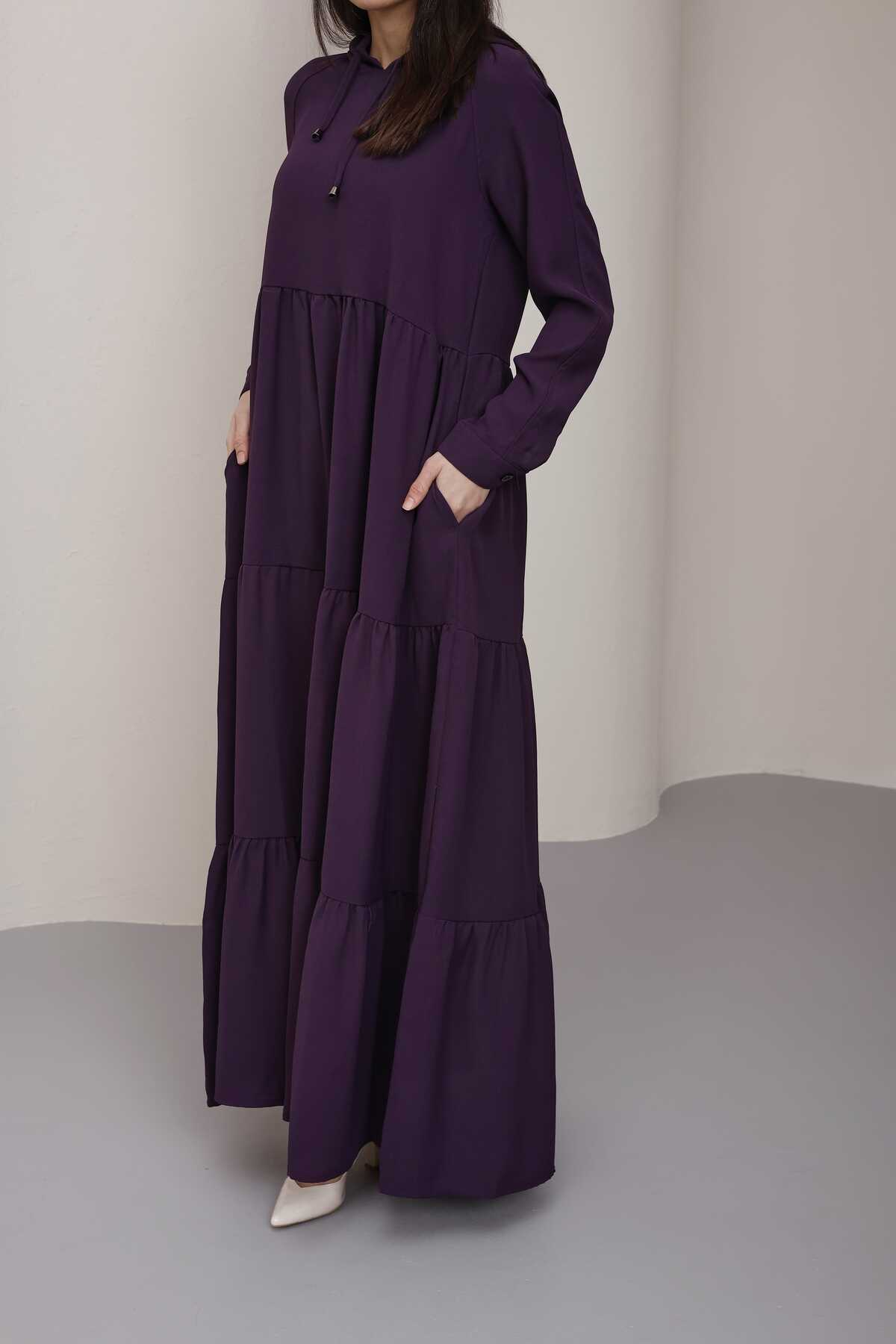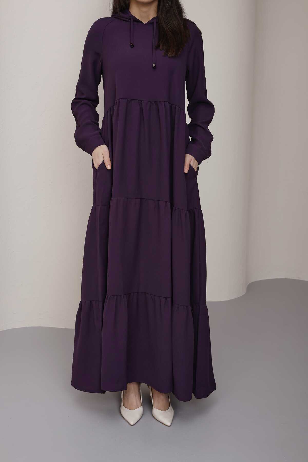 6531-Berlin Kapşonlu Reglan Kollu Elbise Mürdüm