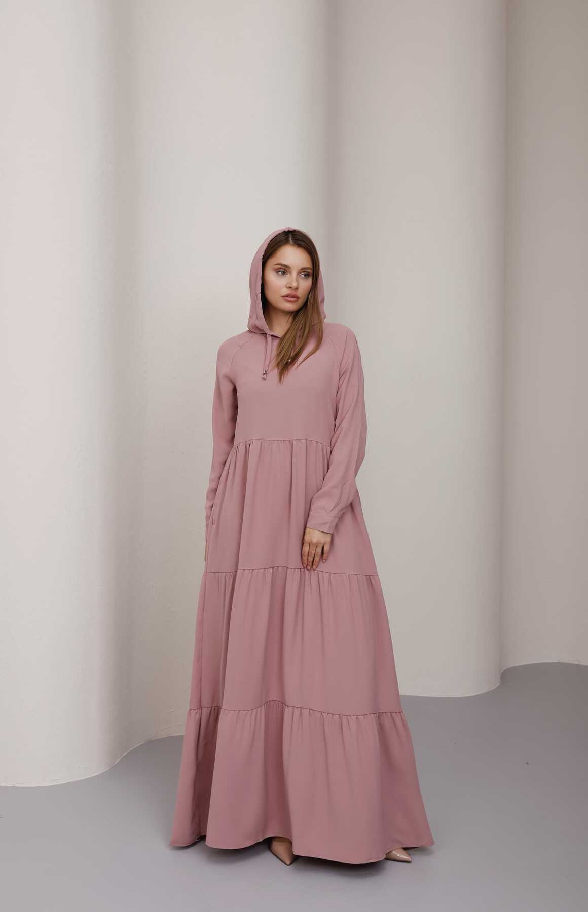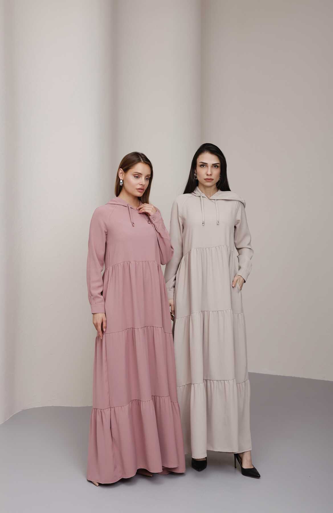 - Ürün Adı : 6531-Berlin Kapşonlu Reglan Kollu Elbise Pudra
