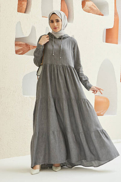 - Ürün Adı : 6531-Denim Kapşonlu Reglan Kollu Elbise Gri