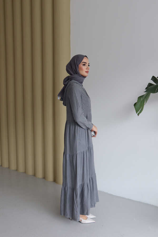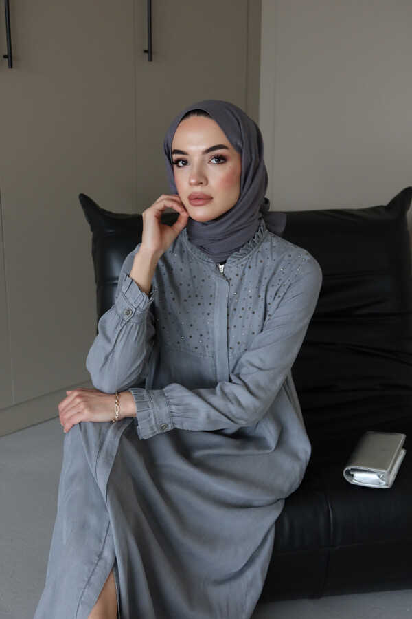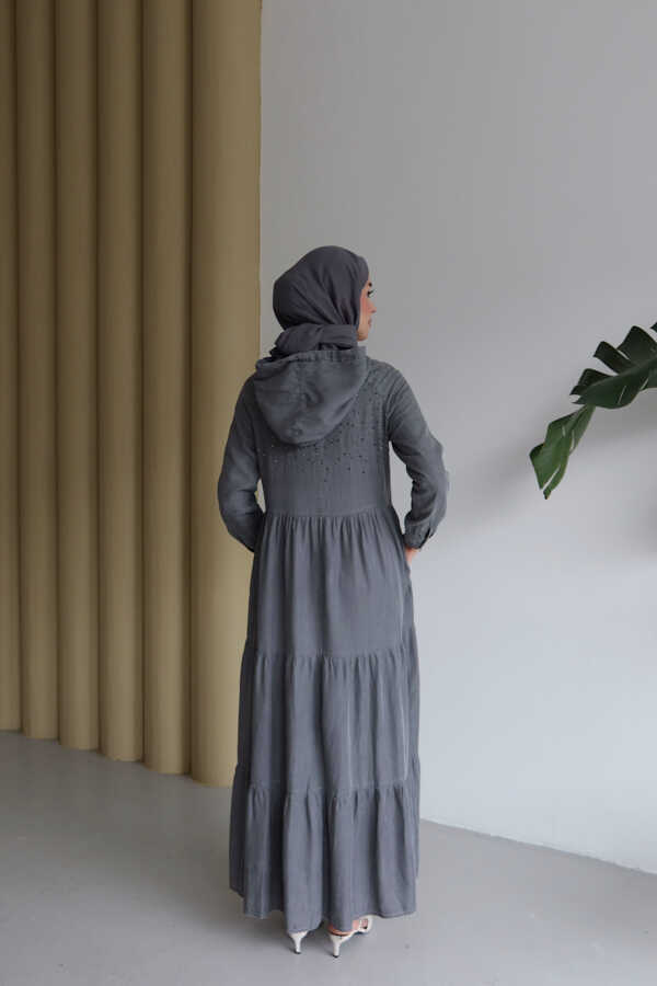 - Ürün Adı : 6531-Taşlı Tensel Kapşonlu Reglan Kollu Elbise Gri
