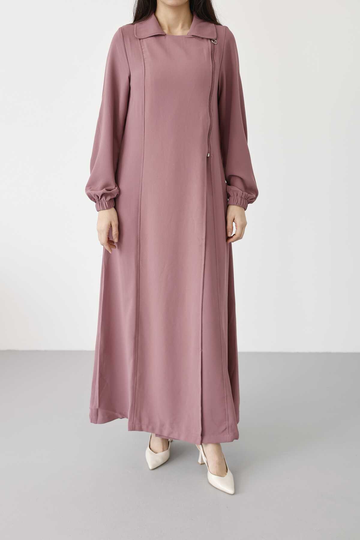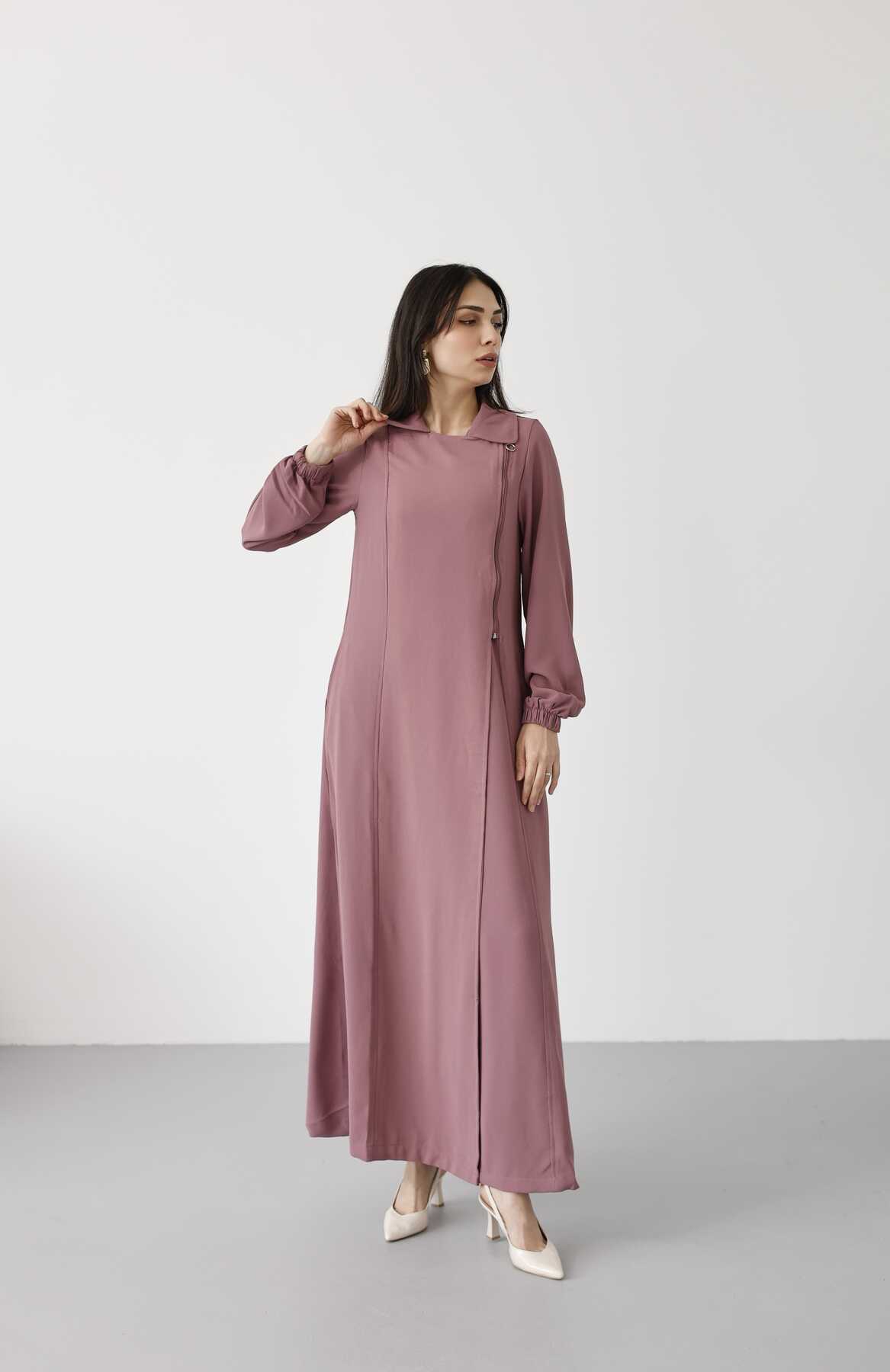 - Ürün Adı : 6541-Krep Yan Fermuarlı Ferace Gül Kurusu