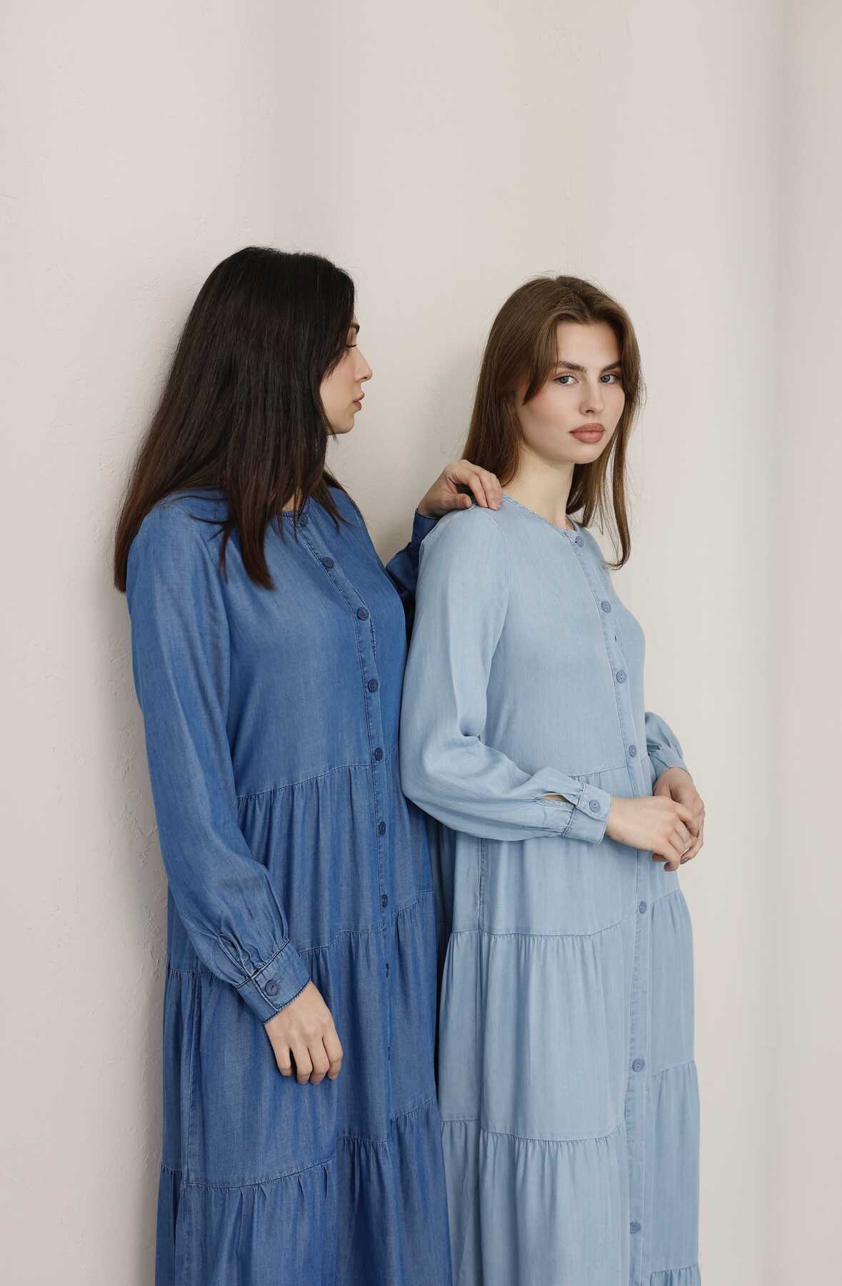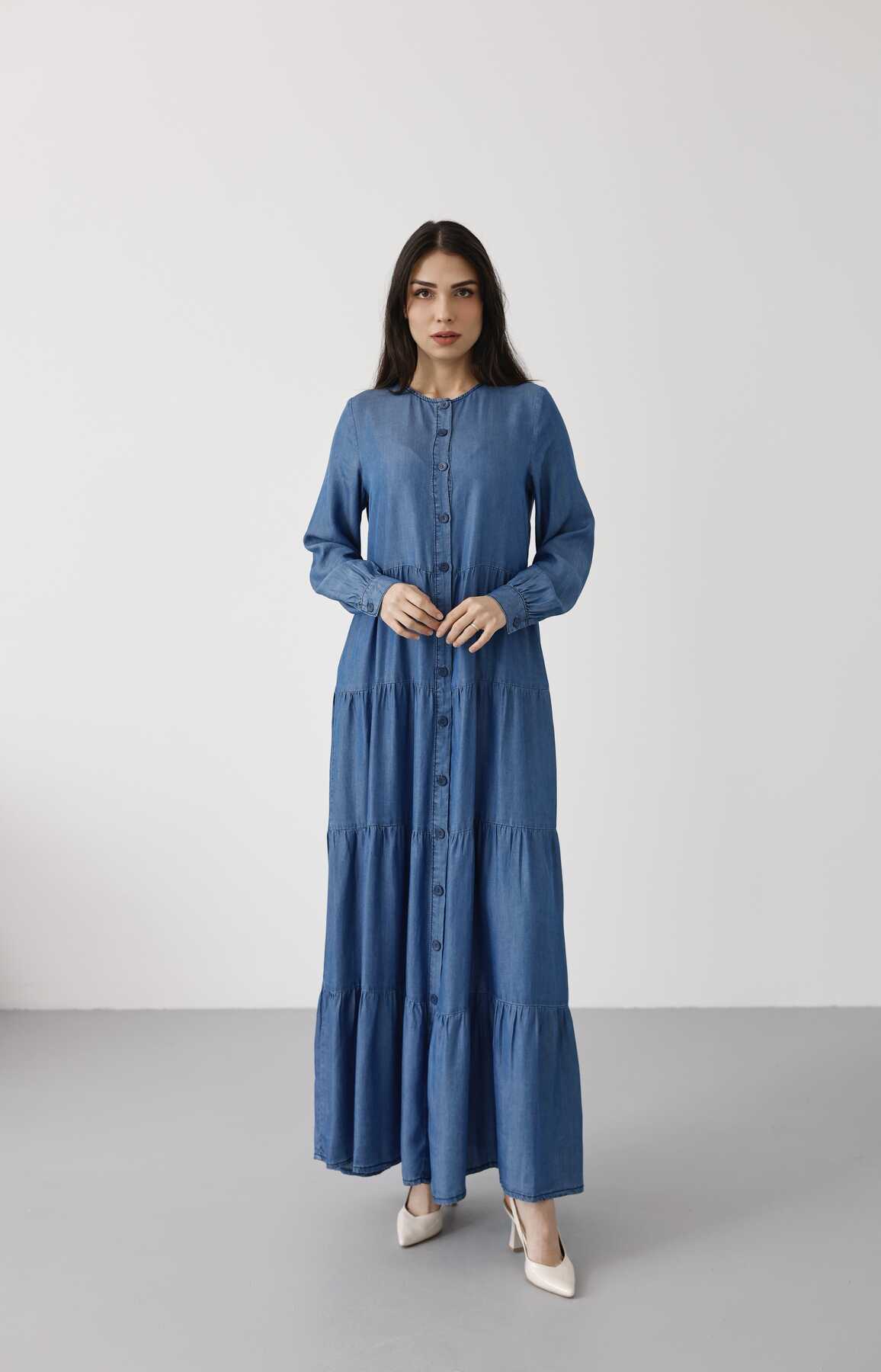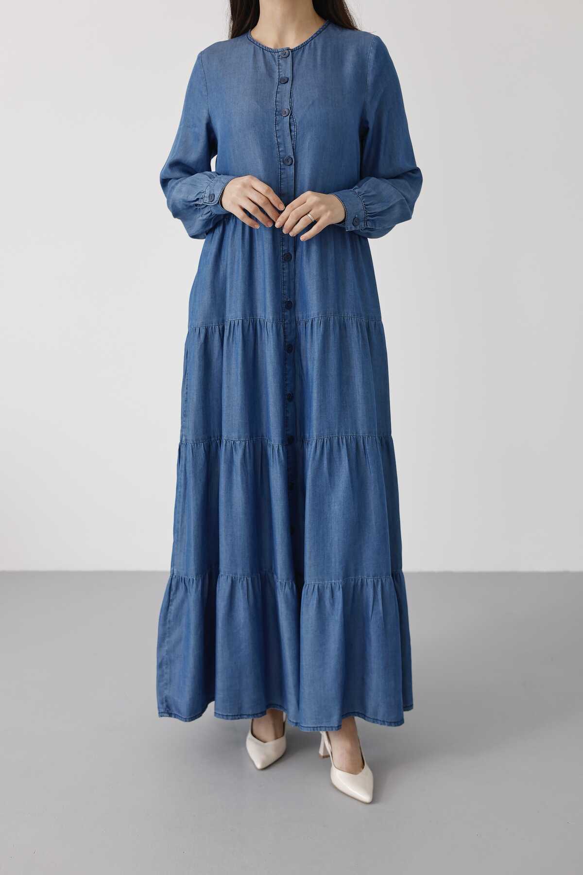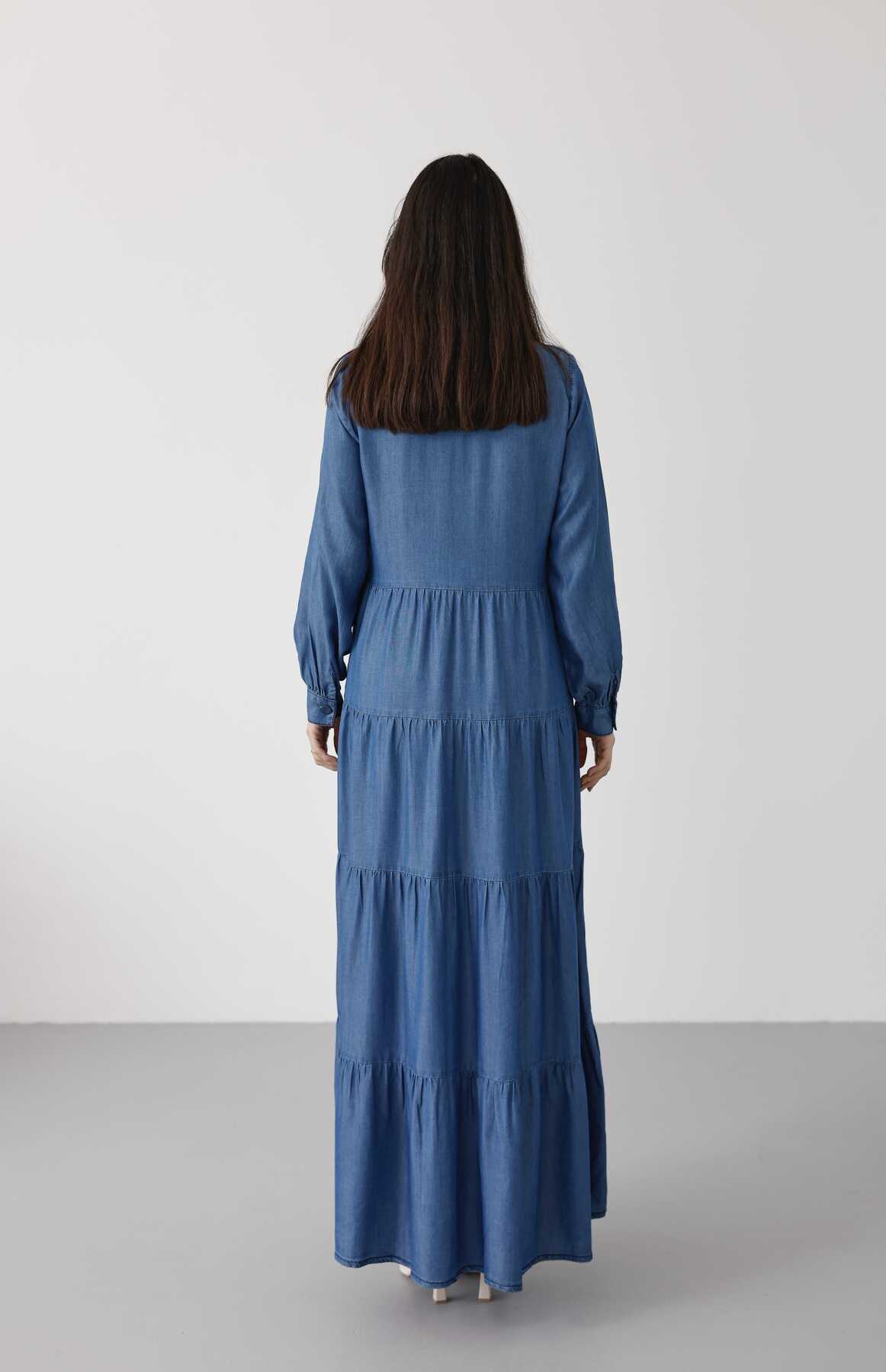 - Ürün Adı : 6556-Denim Düğmeli Büzgülü Elbise Koyu Mavi