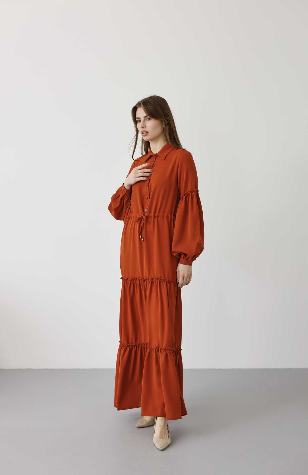 - Ürün Adı : 6567-Carla Büzgülü Elbise Tarçın