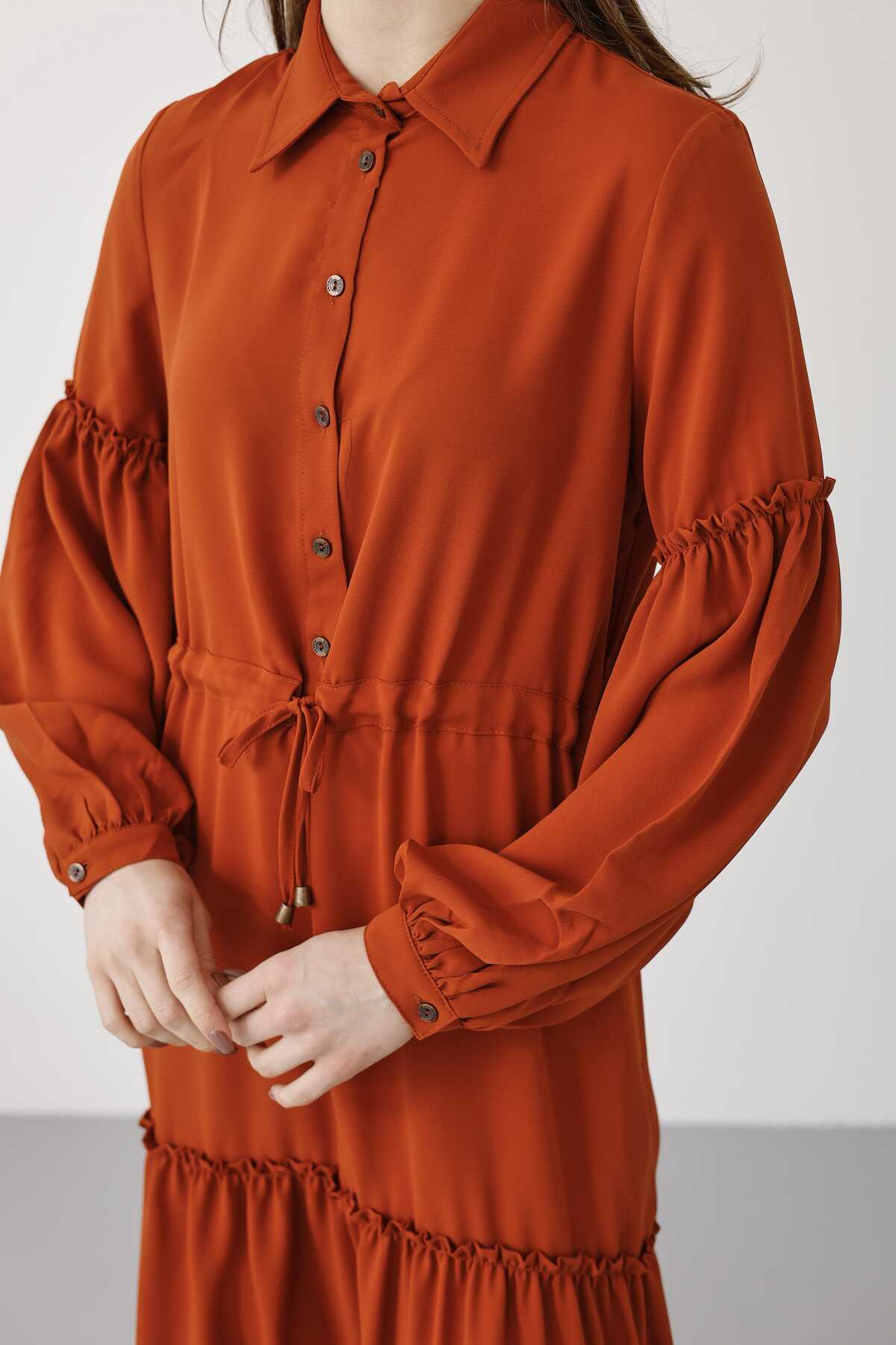 6567-Carla Büzgülü Elbise Tarçın