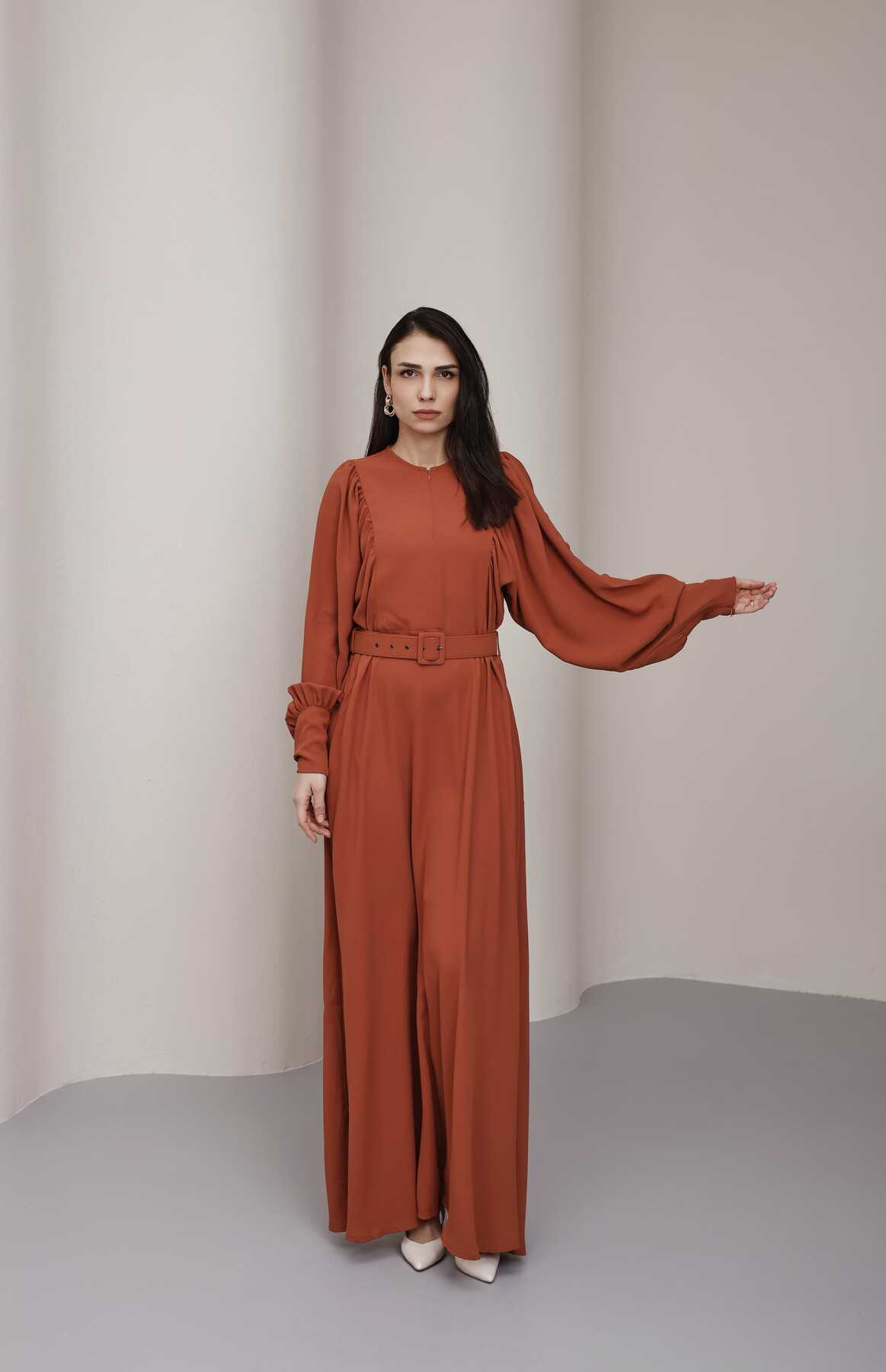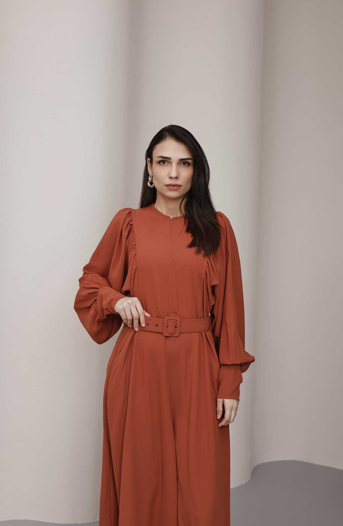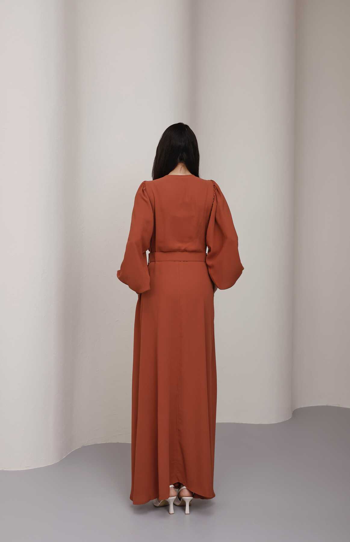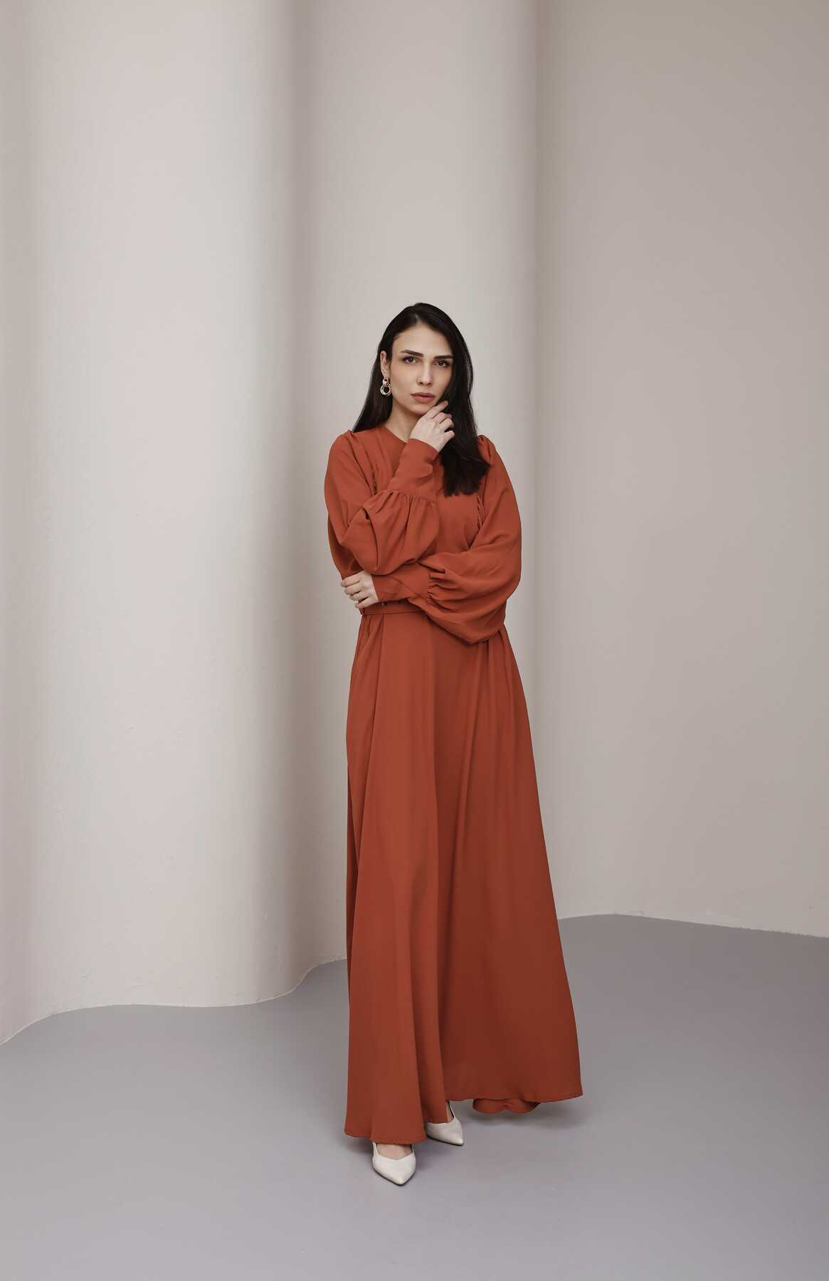 - Ürün Adı : 6583-Krep Elbise Taba