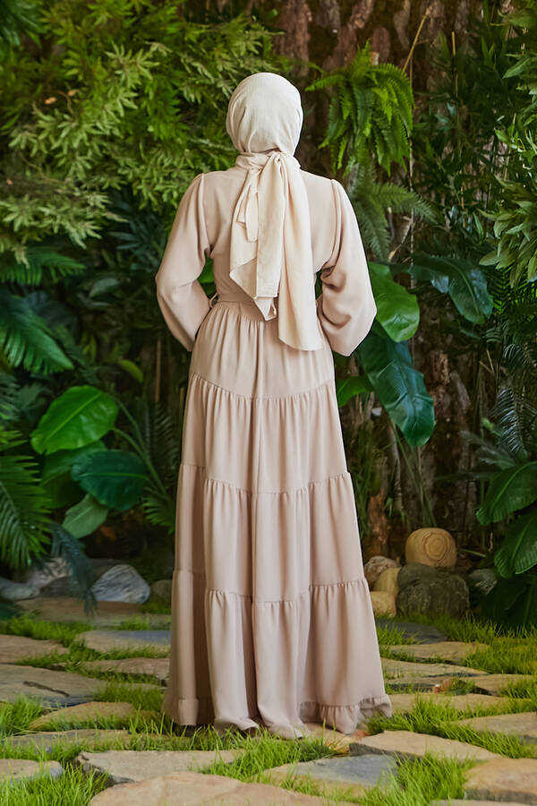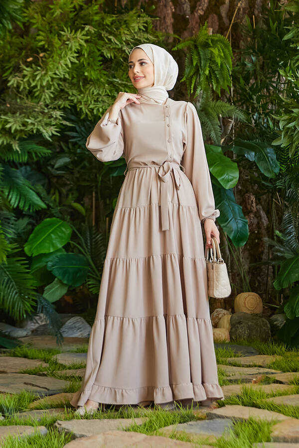 - Ürün Adı : 6599-Berlin Fırfırlı Elbise Bej