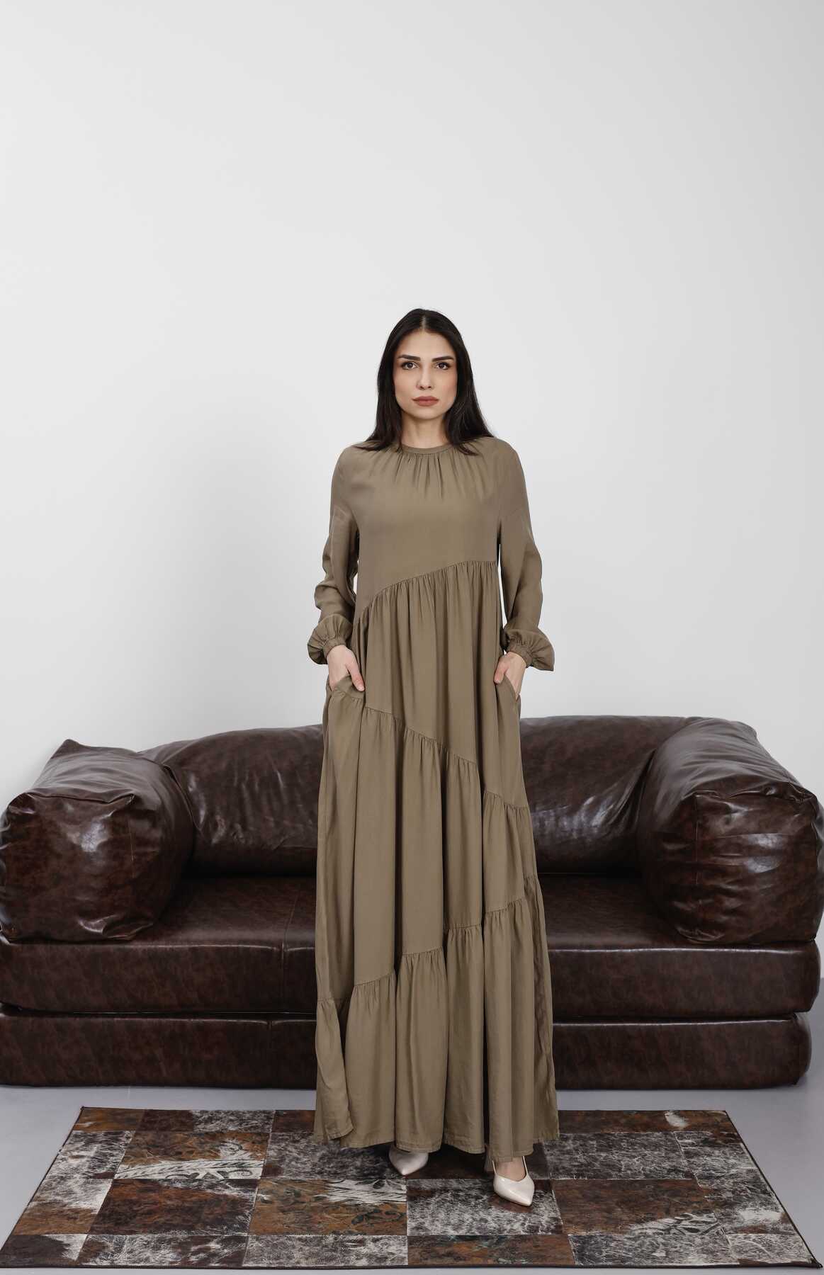 - Ürün Adı : 6614-Denim Büzgülü Tensel Elbise Haki
