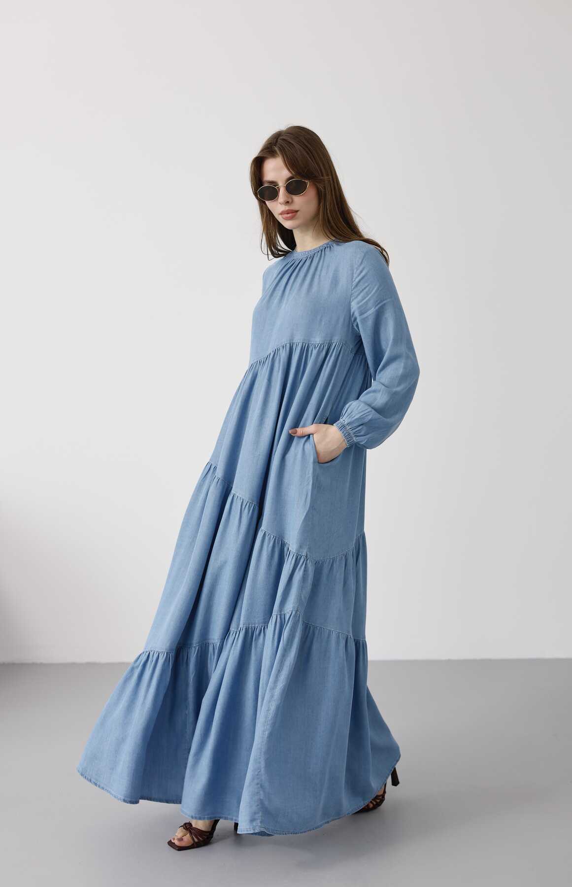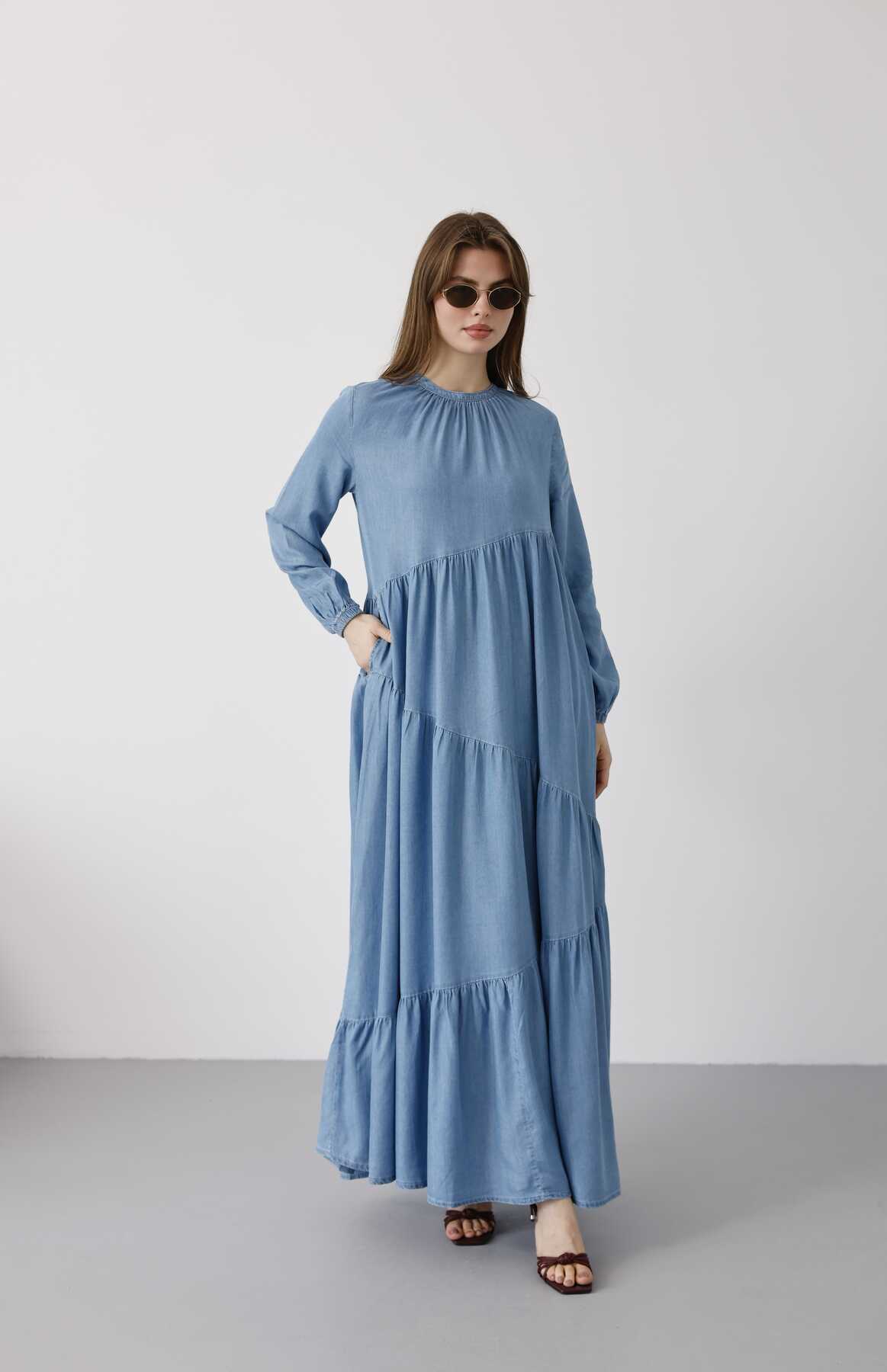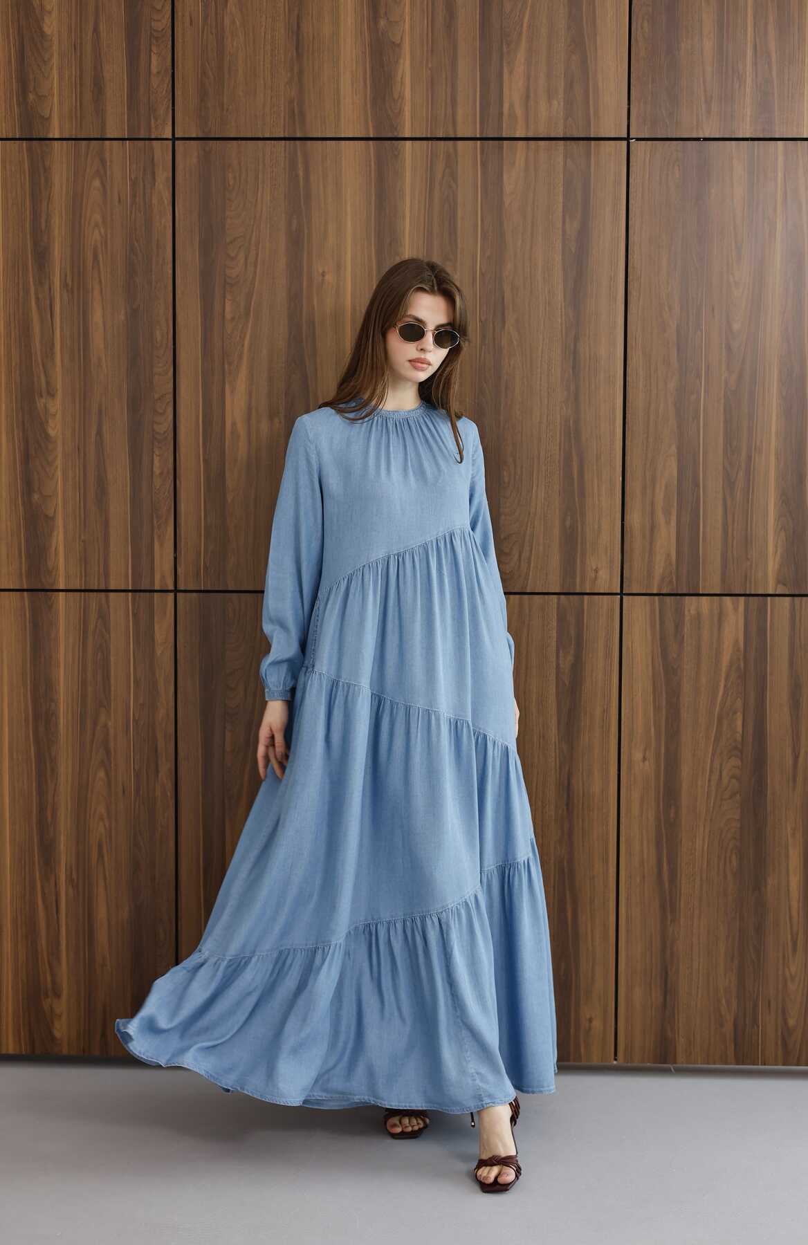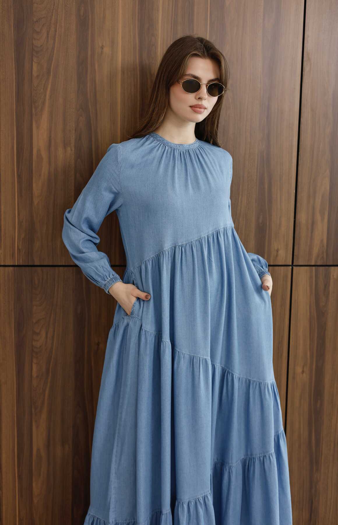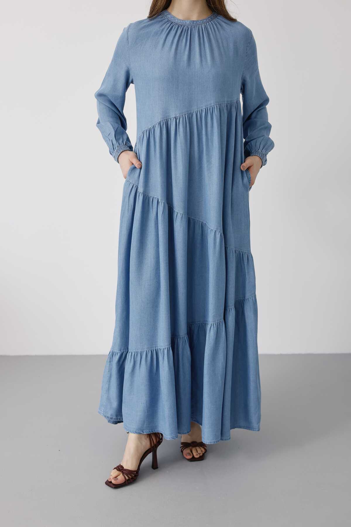 - Ürün Adı : 6614-Tensel Büzgülü Elbise Mavi
