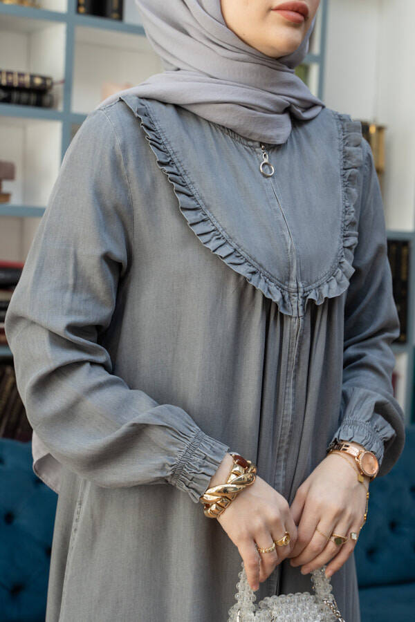 - Ürün Adı : 6619-Tensel Fırfırlı Ferace Gri