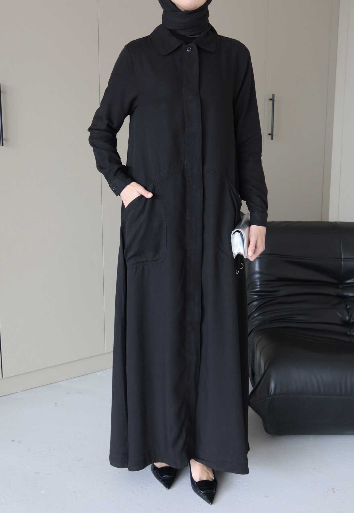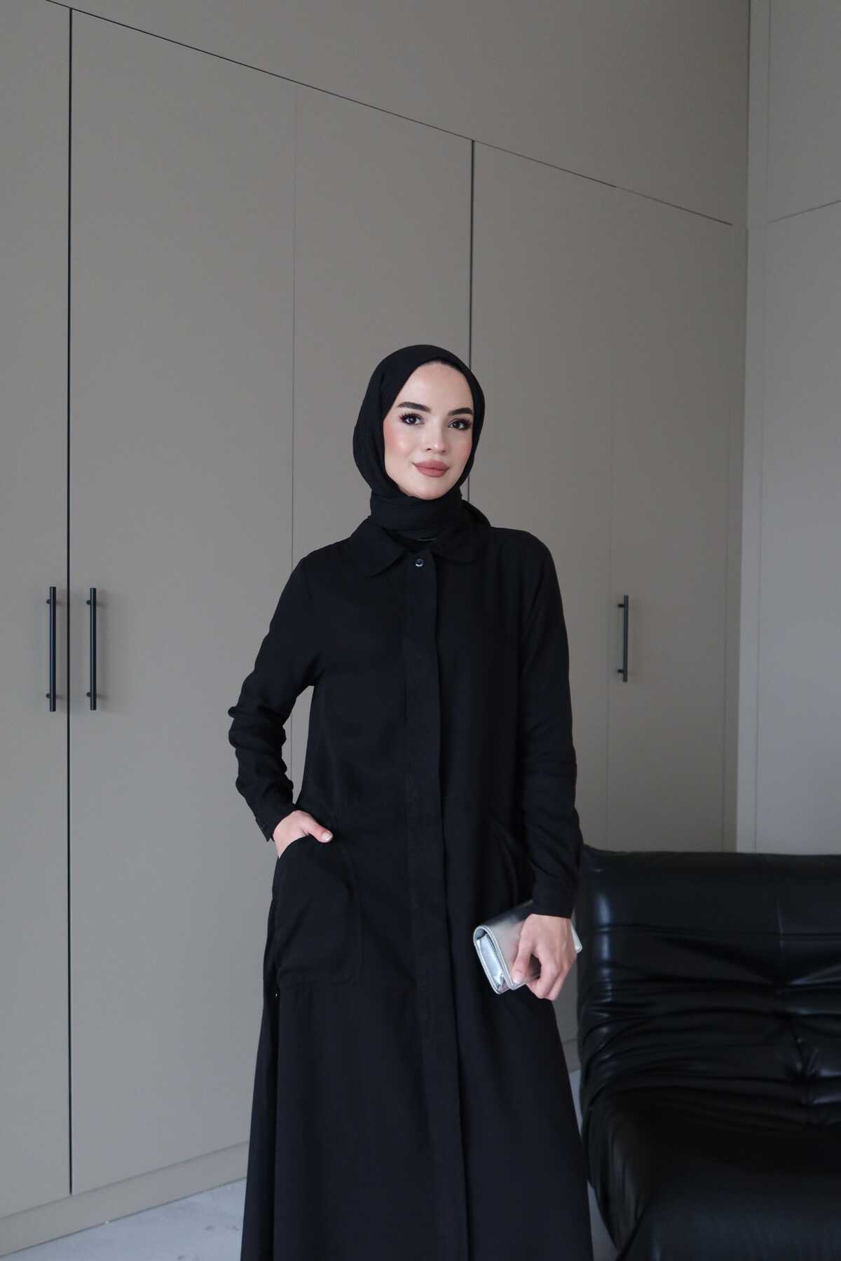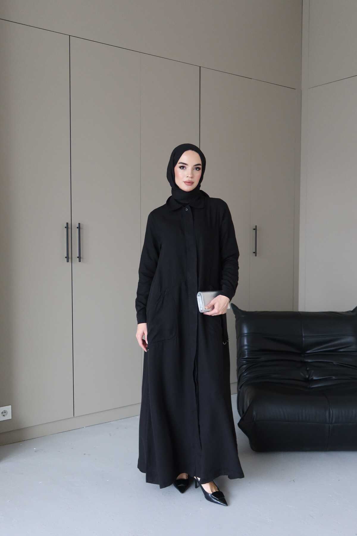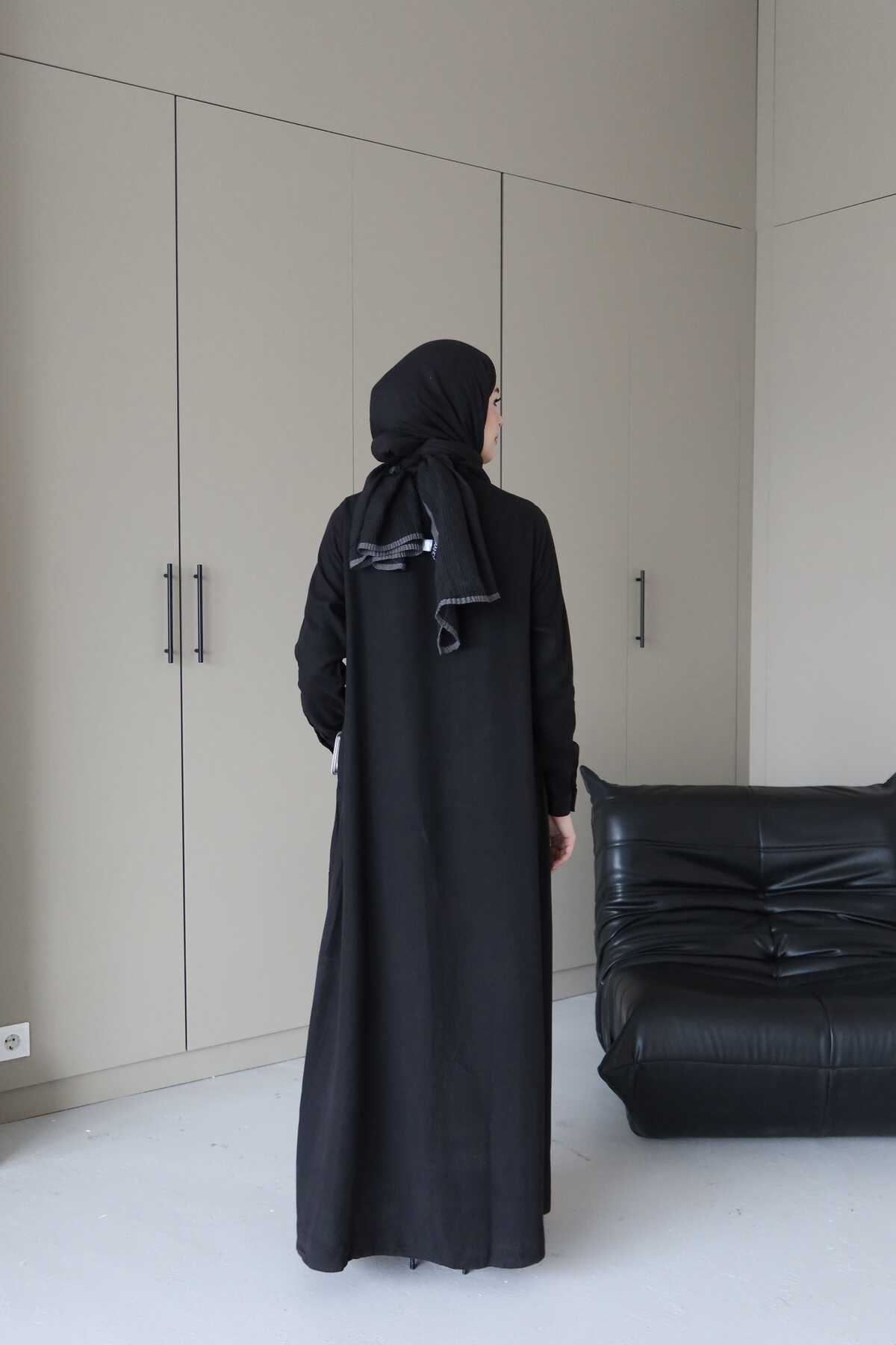 - Ürün Adı : 6648-Parça Boya Tensel Düğmeli Ferace Siyah