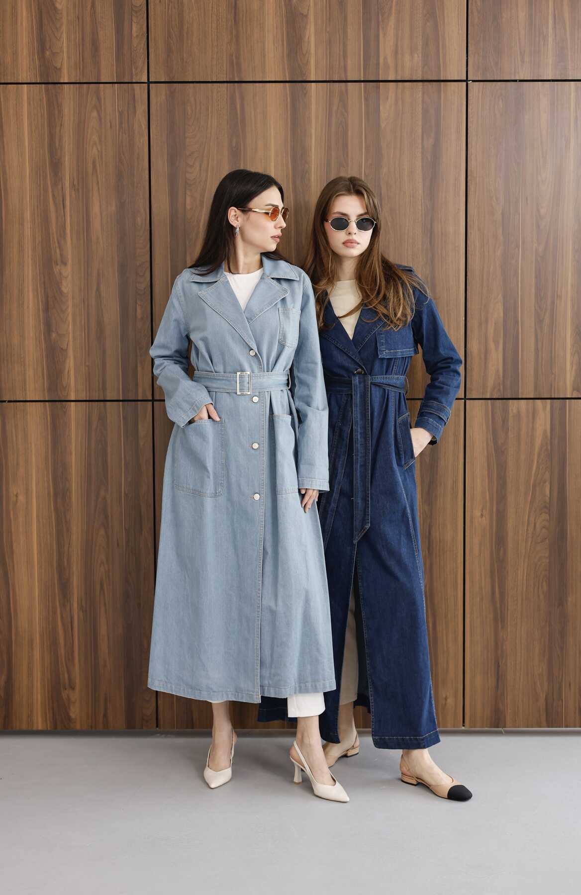 Ürün Adı:6655-Kuşaklı Denim Ceket Mavi