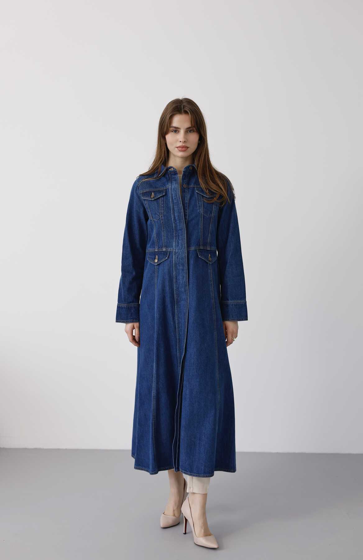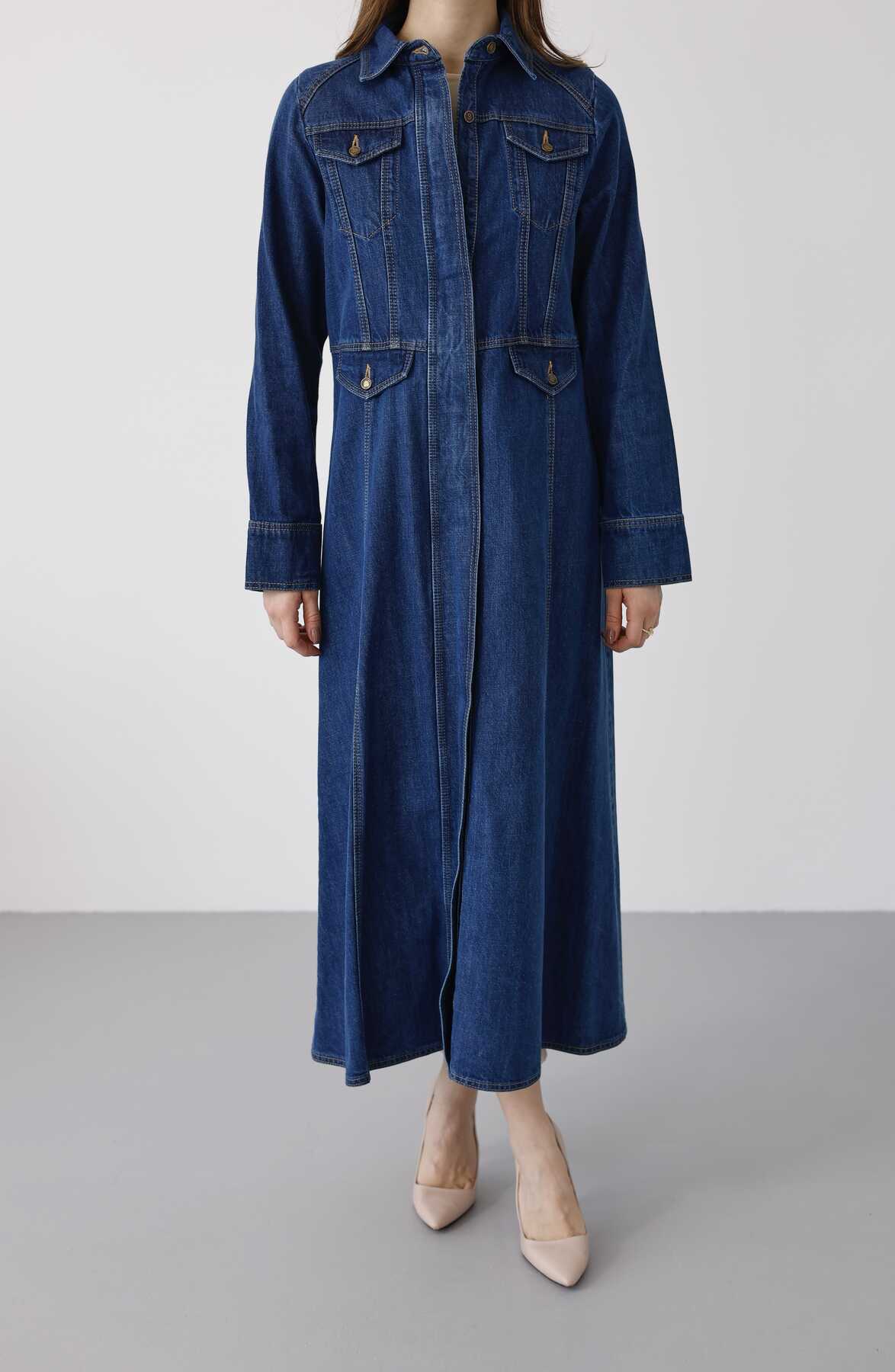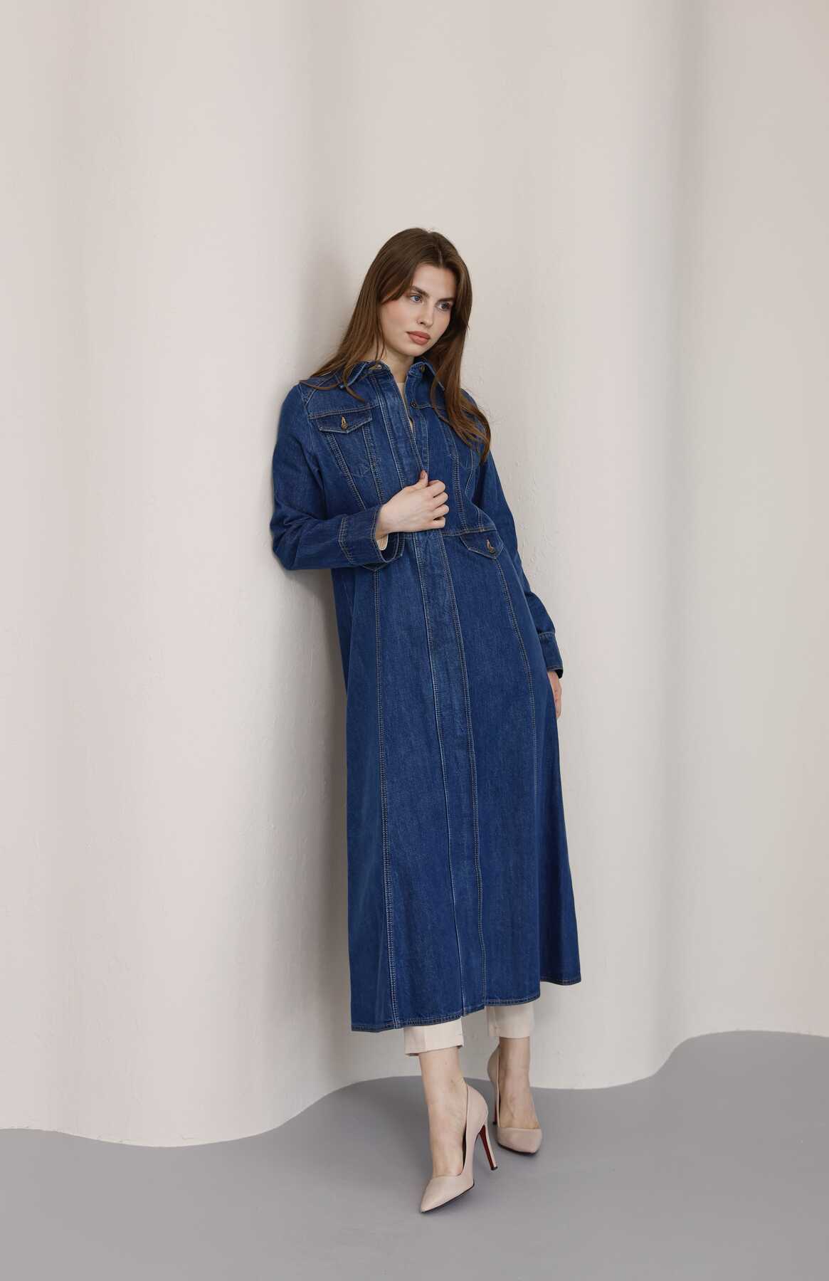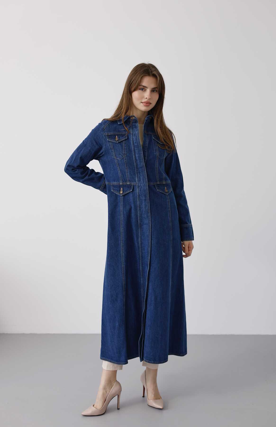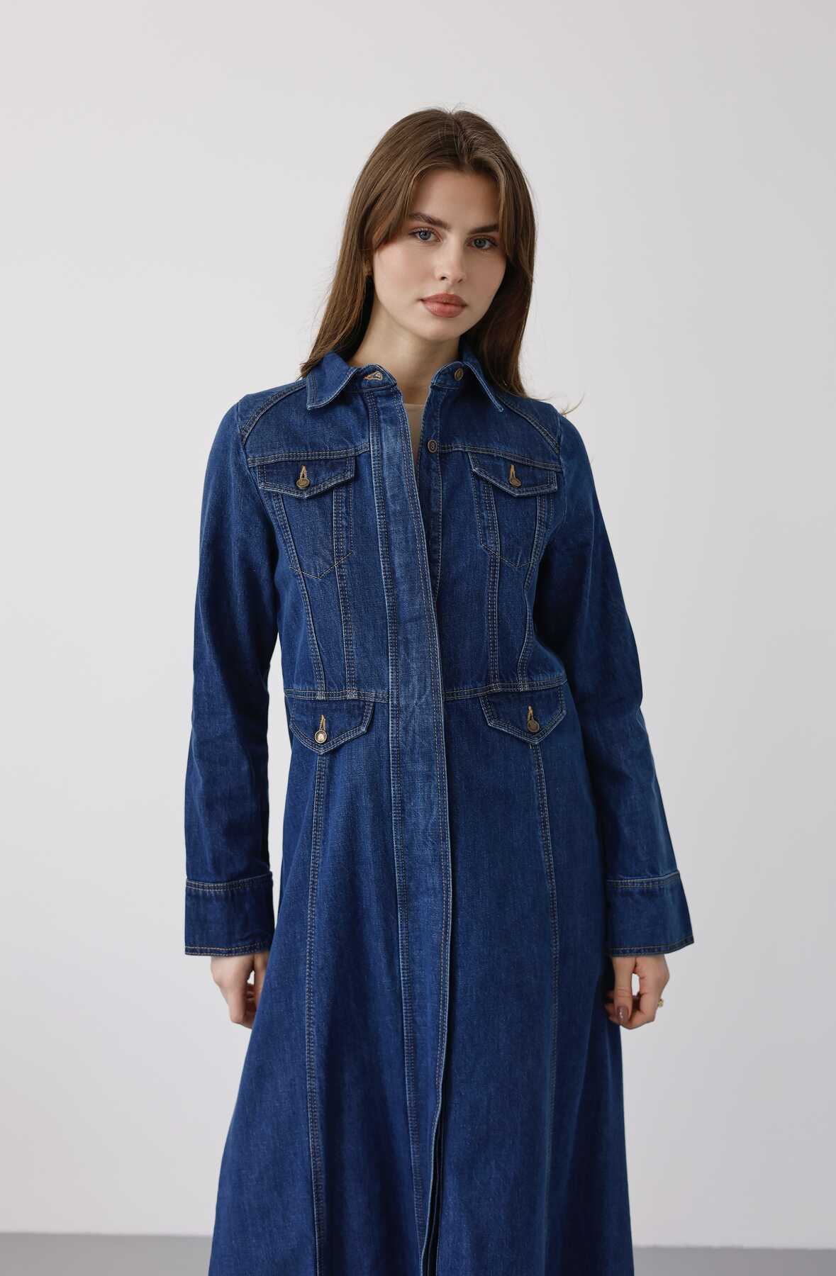 - Ürün Adı : 6670-Uzun Yakalı Patlı Trençkot Koyu Mavi