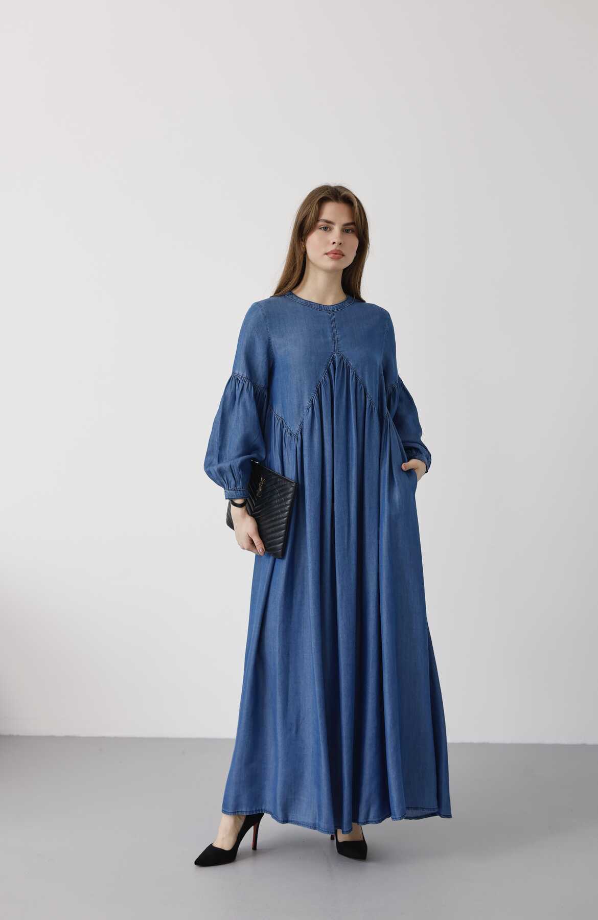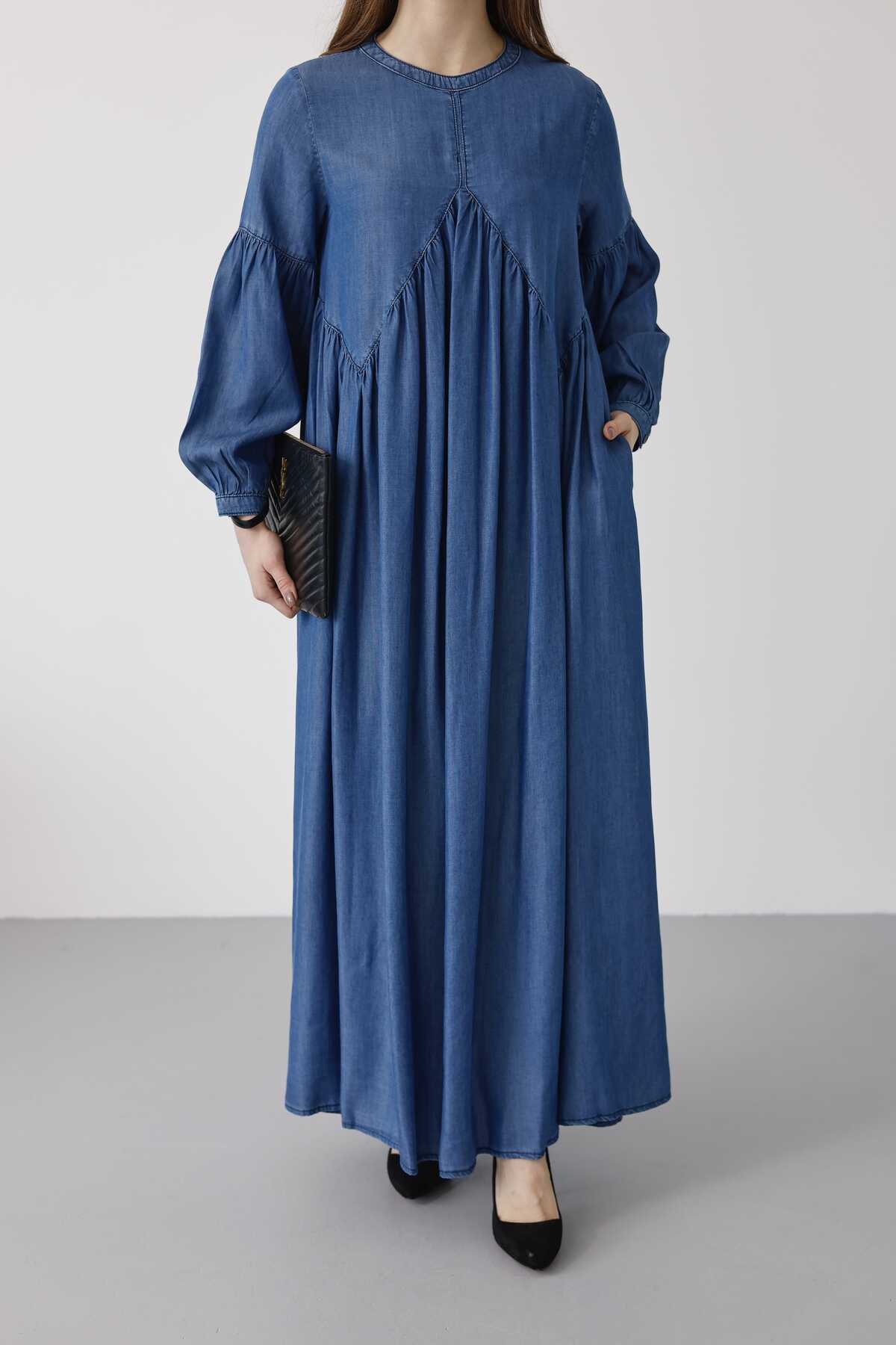 - Ürün Adı : 6672- Büzgülü Tensel Elbise Koyu Mavi